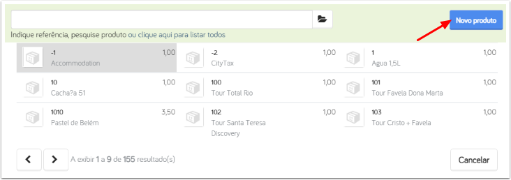 หากเป็น ผลิตภัณฑ์ใหม่ คลิกที่ Novo Produto (ผลิตภัณฑ์ใหม่) เพื่อสร้าง: