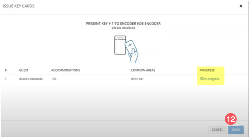 1. แตะบัตรกับเอ็นโคเดอร์ หากต้องการเข้ารหัสบัตรหลายใบติดต่อตามคอลัมน์ ความคืบหน้า บนหน้าจอ