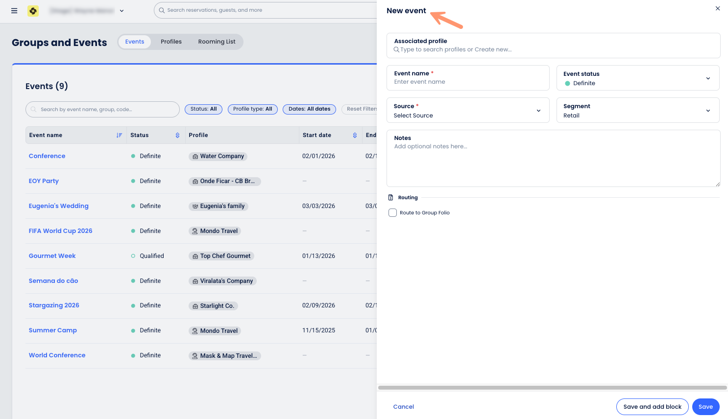 ในสถาปัตยกรรมใหม่ โปรไฟล์ คือ “แหล่งข้อมูลเดียวที่เชื่อถือได้” ขององค์กรของคุณ (บริษัท, ตัวแทนบริษัทท่องเที่ยว หรือกลุ่ม) และ อีเวนต์ คือพื้นที่ทำงานเฉพาะที่พักที่คุณจัดการรายละเอียดปฏิบัติการสำหรับการเข้าพักหรือโอกาสเฉพาะ (วัน, บล็อกโควตา, การรับส่ง และเงื่อนไขระดับอีเวนต์)