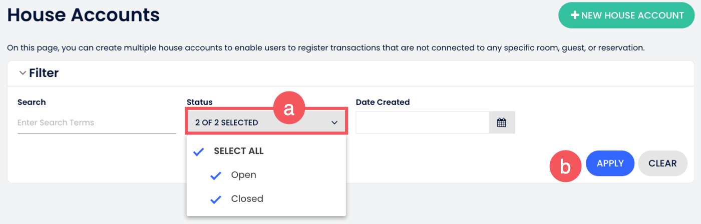 ด้วยคุณลักษณะบัญชีภายใน คุณสามารถ สร้างบัญชีภายในหนึ่งรายการหรือหลายรายการ ซึ่งช่วยให้ผู้ใช้สามารถลงทะเบียนธุรกรรมสำหรับสินค้าที่ไม่เชื่อมต่อกับห้องพักเฉพาะเจาะจงหรือแขกหรือการจองใด ๆ ด้านล่างนี้คุณสามารถตรวจสอบ วิธีเปิดและปิดบัญชีภายในที่มีอยู่ของคุณ