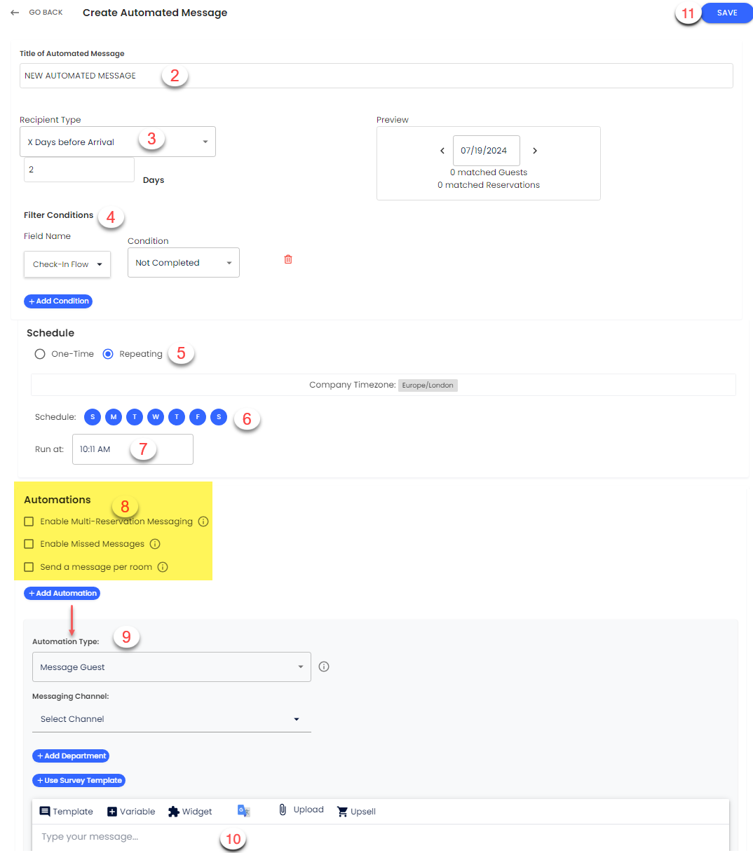 - เลือก ประเภทการอัตโนมัติ: ข้อความสำหรับแขก