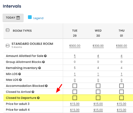 Bu kısıtlamayı, misafirlerin belirli bir tarihte çıkış yapmasını engellemek için kullan. Uygulandığında, o gün için hiçbir rezervasyon sona eremez.