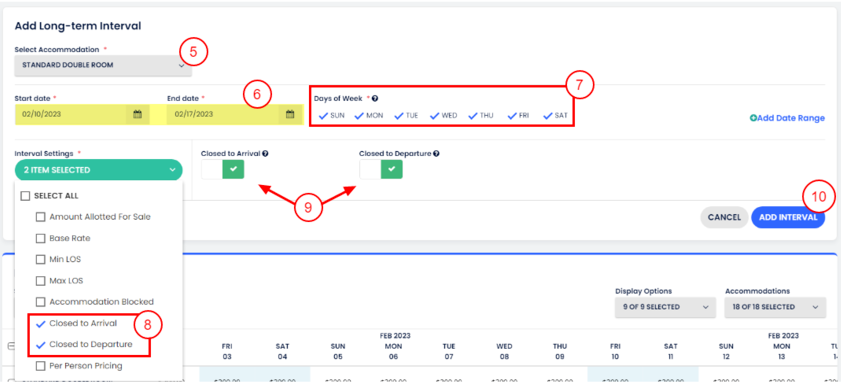 - Kısıtlamaların geçerli olacağı konaklamaları seç.