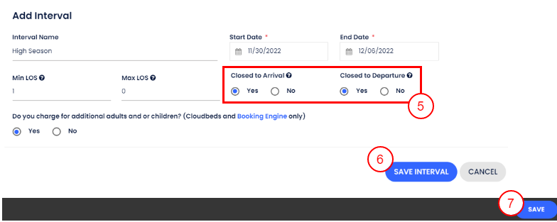 - Girişe/Çıkışa Kapalı seçili tarihler için AÇIK konuma getir.