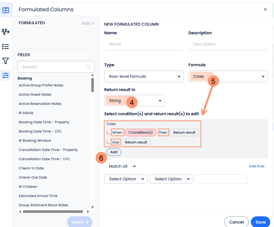 Oluşturduğun ve raporuna eklediğin formüllü Cloudbeds Veri Alanını kullandıktan sonra, raporlama ihtiyaçlarına göre koşula dayalı mantık kurmak için Gelişmiş Formülleri kullanabilirsin.