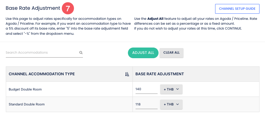 - Gerekirse her oda tipi için bir Taban Fiyat Düzeltmesi ekle. Bu adımı atlamak istersen, sıfır olarak bırak.