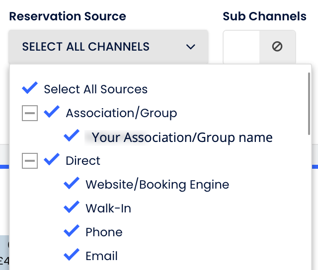 Bir gruba (derneğe) ait tesisler, Grup Rezervasyon Motoru veya kendi web sitelerinin rezervasyon motoru üzerinden rezervasyon alabilir. Her iki durumda da rezervasyonlar kaynağı olarak Web Sitesi/Rezervasyon Motoru olarak gösterilir. Ancak raporlar bu ikisini ayırt eder.