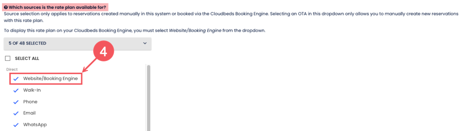 - Fiyat planının Web Sitesi/Rezervasyon Motoru kaynağı için müsait olduğundan emin ol