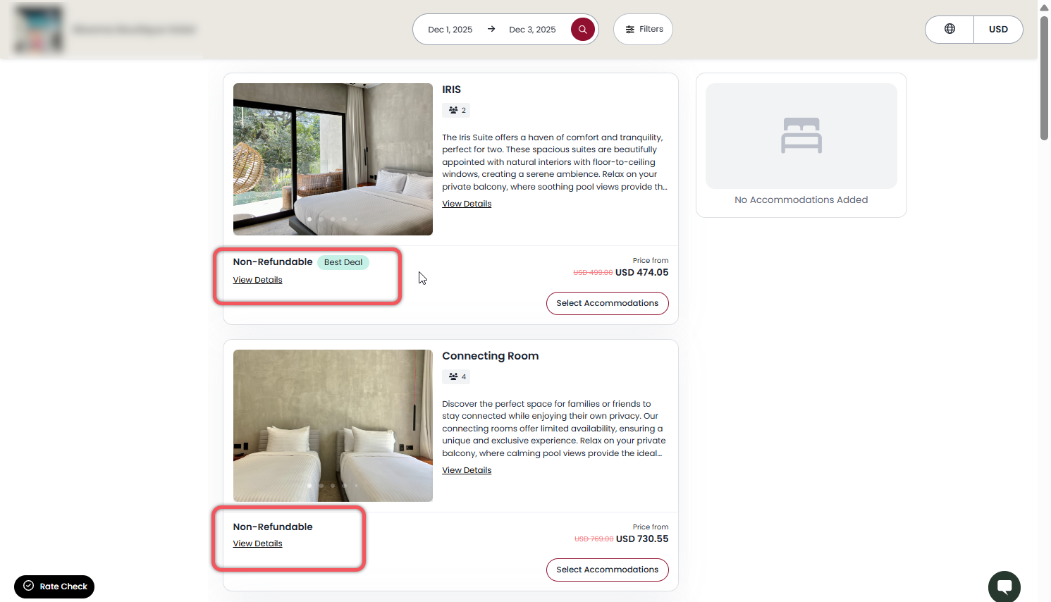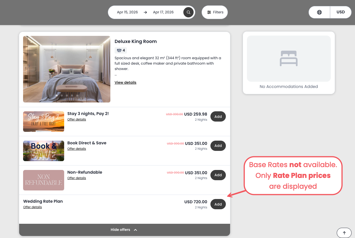 Bu ayarla, Rezervasyon Motoru Standart Fiyatı göstermeyecek ve misafirler sadece diğer fiyat planlarını görecek.
