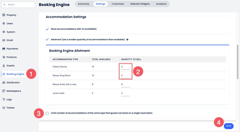 - Misafirlerin aynı rezervasyonda aynı türden yapabilecekleri konaklama sayısını sınırla seçeneğinin işaretli olmadığından emin ol