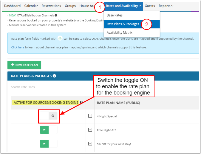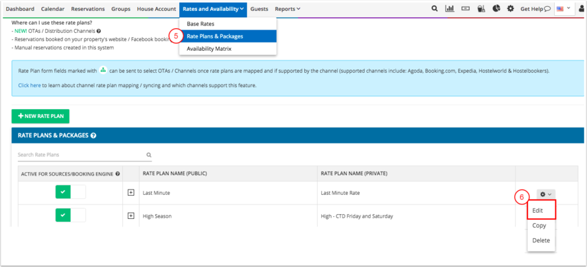 - Rezervasyon kaynağı aktif olduktan sonra, Fiyat Planı & Paketler ayarlarına gidip fiyat planını düzenle.