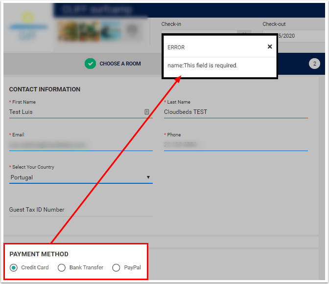 Misafirler Rezervasyon yapmaya çalışırken - HATA: Bu Alan Gereklidir - mesajı görüyor