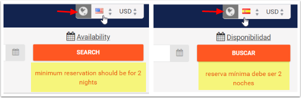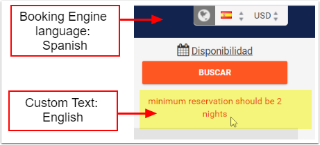 Rezervasyon motoru sayfana girdiğinde, metin sadece kodun yazıldığı dilde gösterilir. Rezervasyon motoru dilini değiştirdiğinde sistem metni otomatik olarak çevirmeyecektir: