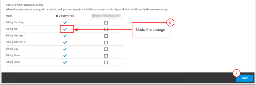 - 4. adımda yaptığın geçici değişikliği geri al (Örnek: Fatura Posta Kodu kutusunu tekrar işaretle)