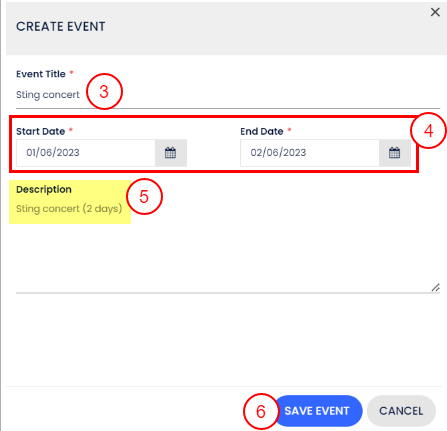 - Etkinlik Açıklamasını gir (isteğe bağlı)