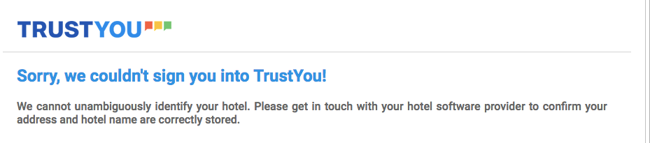 Bu mesajı gördüğünde, TrustYou'nun oteli veritabanlarında başlangıçta kuramamış olduğu anlamına gelir. Aşağıdaki adımları takip et: