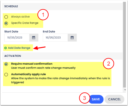 1. Kural setini Her Zaman Aktif veya Belirli Bir Tarih Aralığı için aktif olacak şekilde seç.