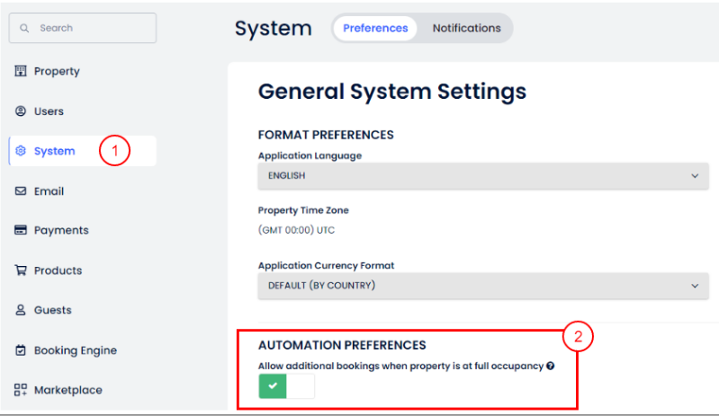 - Tercihler sekmesinde, Tesis dolulukta iken ek rezervasyonlara izin ver özelliğine git. Etkinleştirmek veya devre dışı bırakmak için tıkla