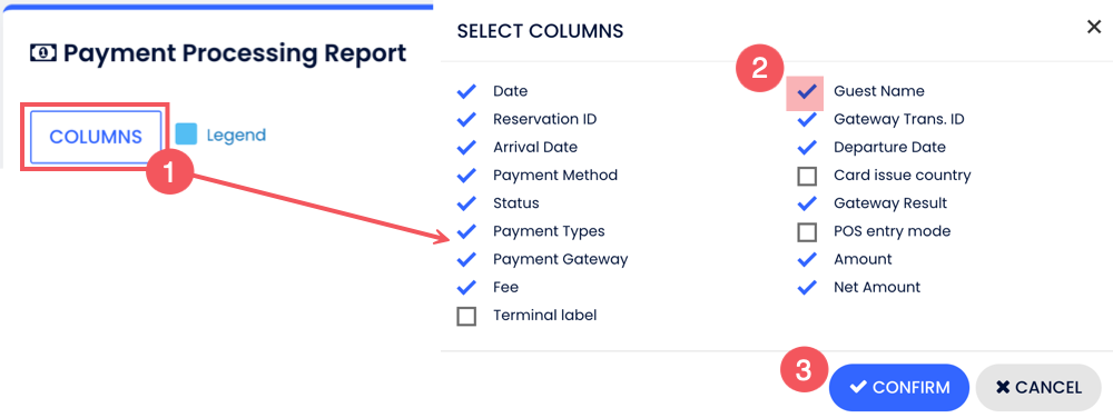 Sütun butonuna tıkla ve raporunda görmek istediğin sütunları işaretle veya işaretini kaldır. Değişiklikleri kaydetmek için Onayla butonuna tıkla.