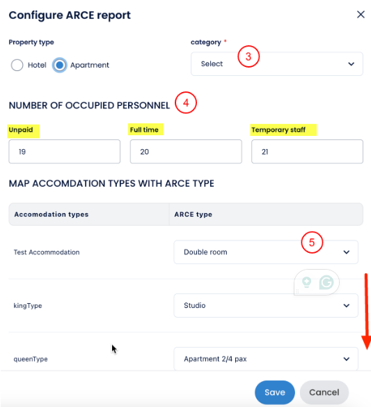 - Cloudbeds Konaklama Türünü açılır menüden ARCE Türü ile eşleştir. Tüm konaklama türlerini görmek için aşağı kaydır ve her birini eşleştirdiğinden emin ol.