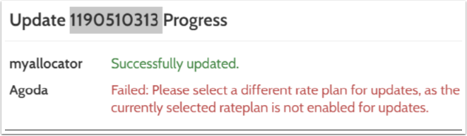 Bir güncelleme denemesinden sonra Priceline/Agoda için aşağıdaki hata görünebilir: