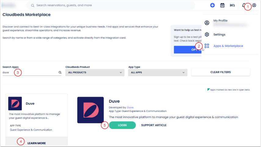 Duve’yi Cloudbeds hesabınla nasıl entegre edersin