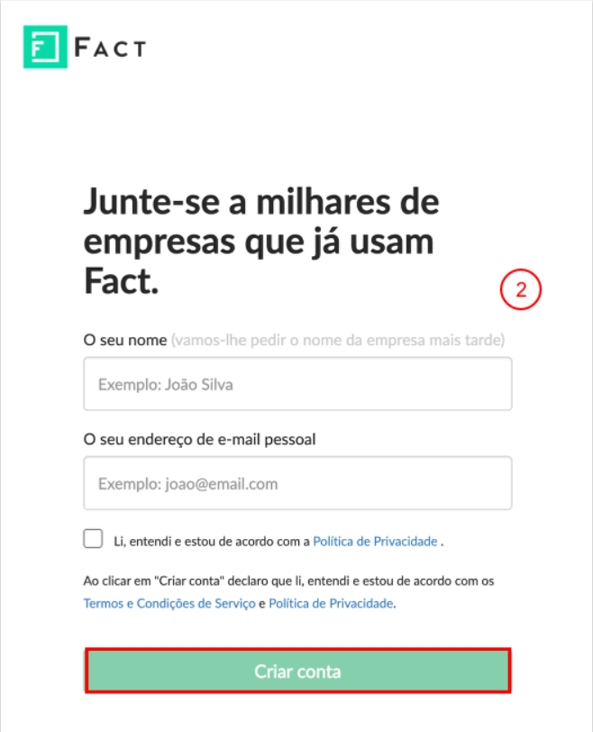 1. Yeni Fact hesabı oluşturmak için bağlantıya tıkla: https://www.fact.pt/register/user
