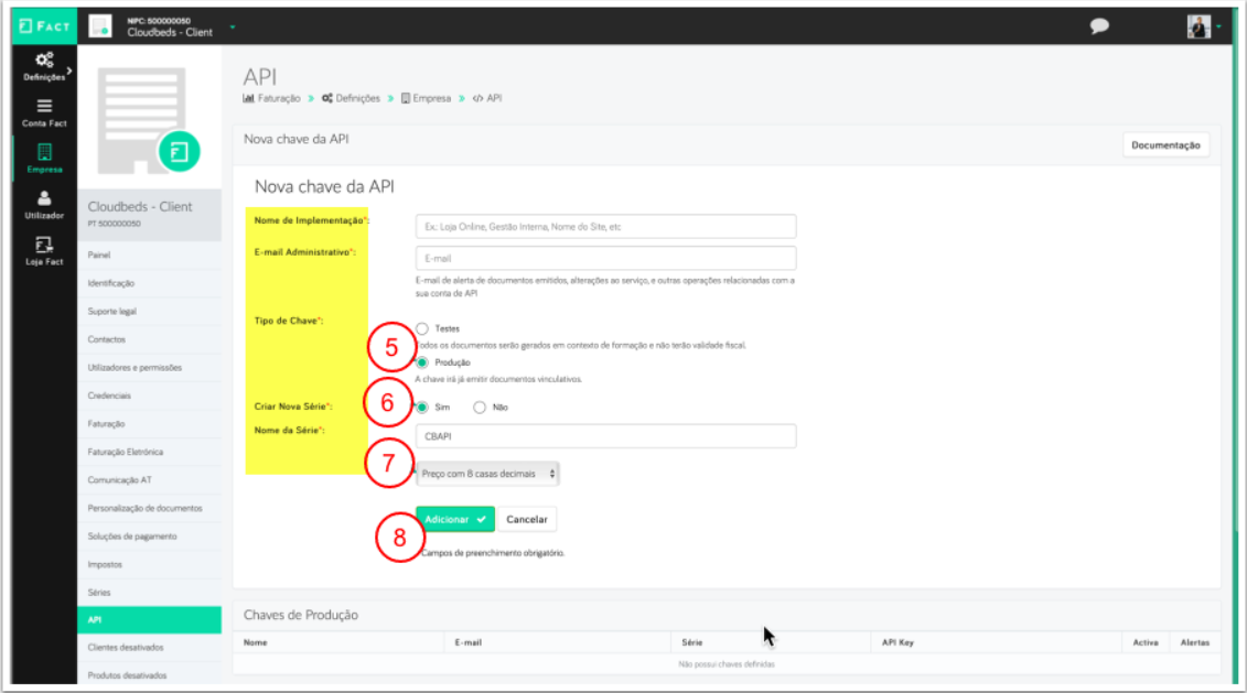 Birden fazla tesisin varsa, aynı Fact hesabı altında her tesis için bir API Anahtarı oluşturabilirsin. Faturaları kolayca tanımlayabilmek için farklı isimler kullanarak oluşturmaya dikkat et.
