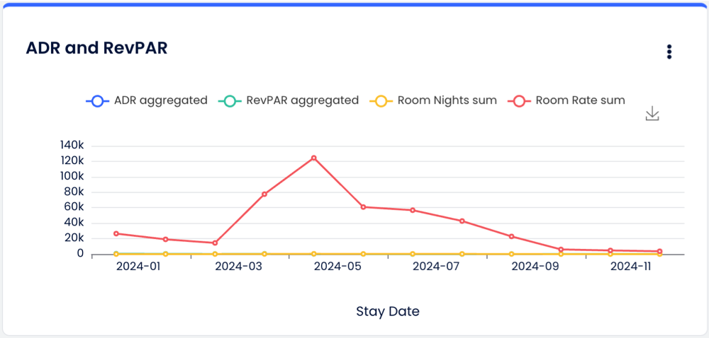 Cloudbeds Insights ile artık Kaydedilmiş Raporlarına çizgi, çubuk, pasta ve güneş patlaması türlerinde grafikler Eklebilirsin. Grafikler düzenlenebilir ve kaldırılabilir; ayrıca sadece tablo görünümünde bulunan verilerin bir kısmını temsil ederler. Grafikler ayrı olarak indirilebilir ancak tablo dışa aktarımının bir parçası değildir.
