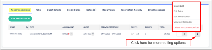 - Düzenle - Açılır menüde Hızlı Düzenle, Rezervasyonu Düzenle veya Fiyatı Düzenle gibi rezervasyonunu değiştirmek için çeşitli seçenekler bulunur.