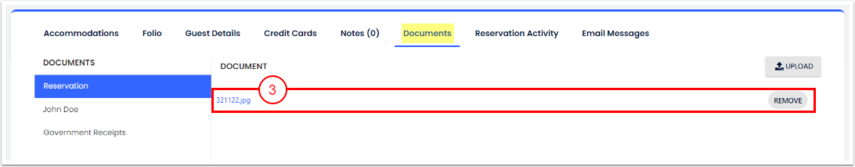 - Belgeler sekmesinde, dosyayı Rezervasyona mı yoksa Misafir profiline mi eklemek istediğini seç