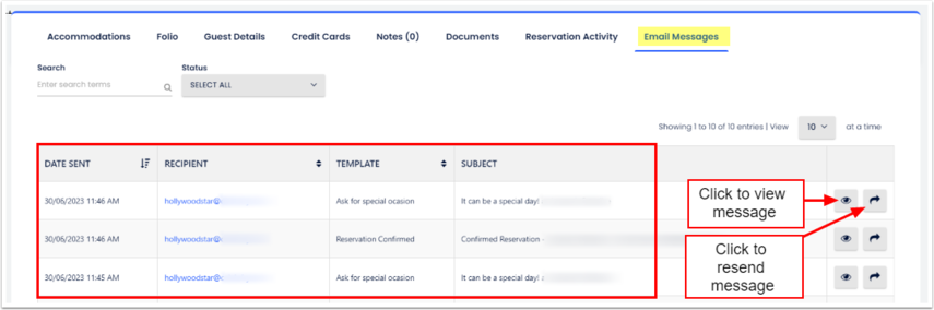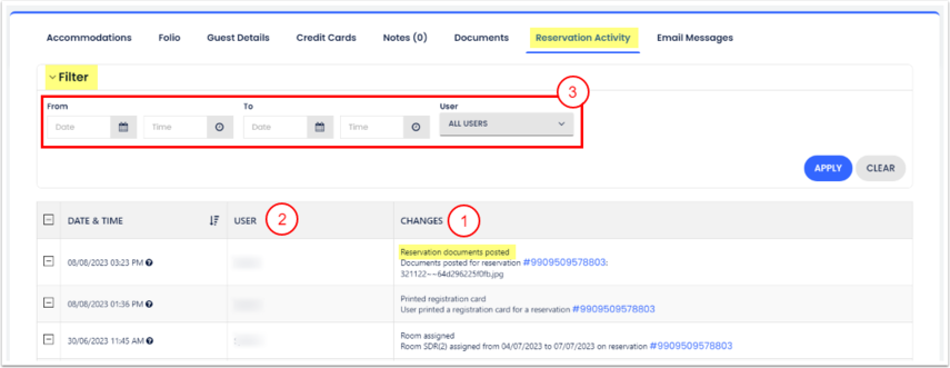 - Her bir aktiviteyi takip et: oluşturma, içe aktarma, oda atama, fiyat değişiklikleri, folyo aktivitesi, yüklenen belgeler vb.