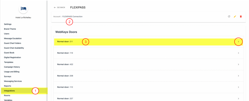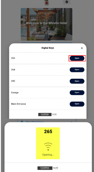 Flexipass Webkeys, misafirlerin Flexipass mobil uygulamasını indirmeden kapıları açmalarını sağlayan yeni popüler bir Flexipass işlevidir. Anahtarları, Cloudbeds Guest Experience üzerinden Misafir Portalı aracılığıyla erişilebilir ve bir tıkla kapıları açmalarına olanak tanır.