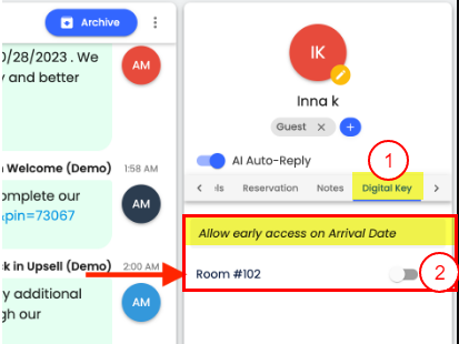 3 - Misafir rezervasyonunda dijital anahtar düğmesini etkinleştir