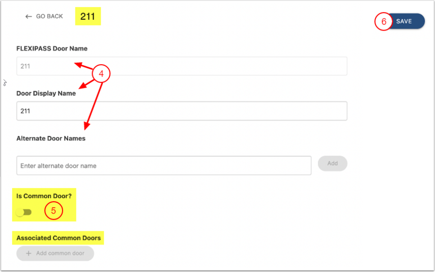 - Bu kapı ortak bir kapıysa geçiş düğmesini aç ve +Ekle ortak kapı butonunda ilişkili kapıları yapılandır