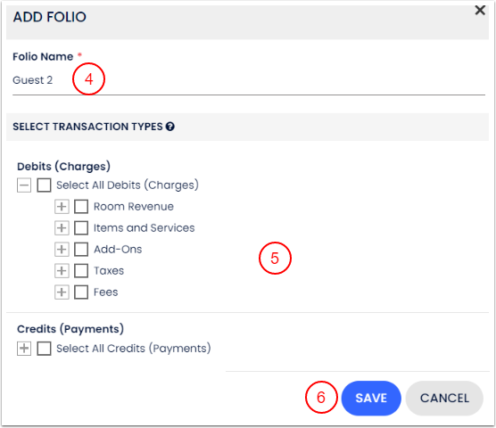 - Bu folyoya işlenmesi gereken işlem türlerini seç (tüm işlem türleri, yapılandırmada belirtilen folyolara taşınacaktır. Belirli bir folyo altında tüm işlem türleri seçilmemişse, seçilmeyen tüm işlem türleri her zaman ilk folyoya işlenmelidir).