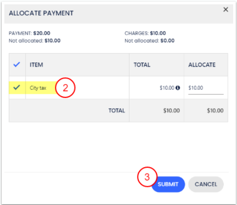 Tahsis işlevi, bir ödemeyi veya iadeyi belirli bir gelir öğesine tahsis etmene olanak tanır. Tesis Hesabında ödeme tahsis etmek için: