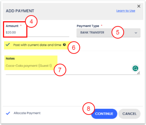 4. Geçerli tarih ve saat ile işle - Bu kutu işaretlendiğinde, aşağıdaki Devam et butonuna tıkladığında işlem için geçerli tarih ve saat kaydedilir. Geçmiş bir tarih için işlem ekliyorsan işaretini kaldırabilirsin.