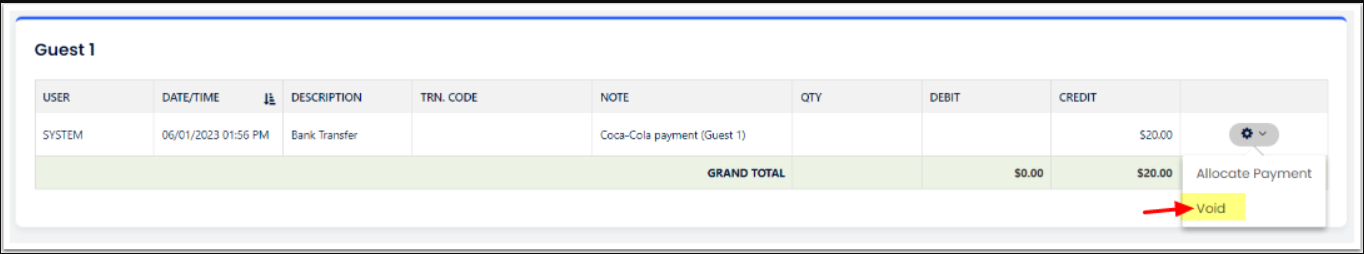 Ödemeyi geçersiz kılmak (Kayıt silmek) için, geçersiz kılmak istediğin ödemenin sağ tarafındaki dişli simgesine tıkla ve ardından Geçersiz Kıl seçeneğine tıkla: