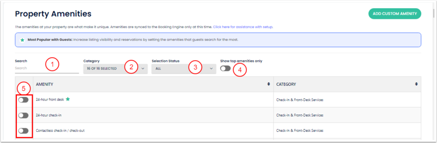 - Arama simgesi: listede tesisinizde bulunan olanakları anahtar kelimelerle bulun