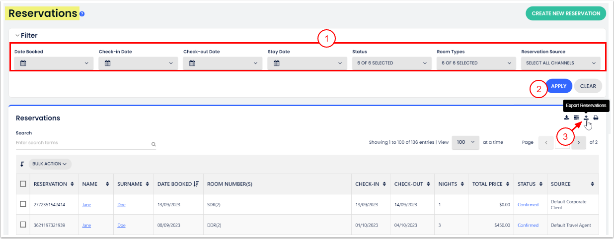 - Rezervasyonları Dışa Aktar'a tıkla