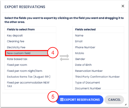 - Dışa aktarmak istediğin alanları, alanın üzerine tıklayıp diğer alana sürükleyerek seç. Özel Alanlar sol tarafta olacak.