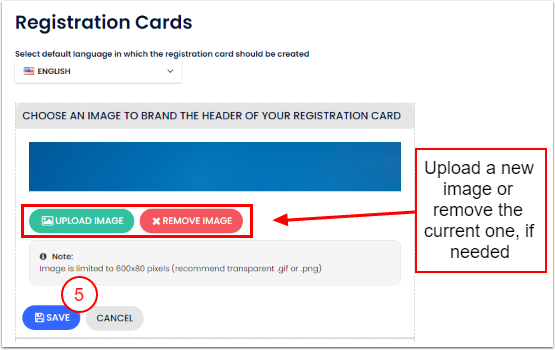 Kayıt Kartlarındaki üst bilgi görseli için şu anda sadece jpg, jpeg, png ve gif formatları kabul edilmektedir.