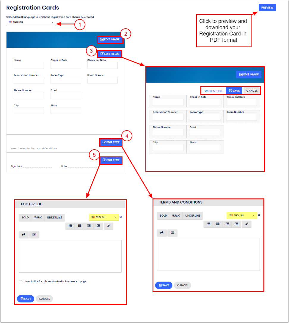 Kayıt Kartları, misafirin konaklama bilgilerini dijital olmayan ortamda saklamak için fiziksel bir kayıt tutmanı sağlar. Bu makale, Cloudbeds PMS'de kayıt kartlarını nasıl oluşturacağınızı veya düzenleyeceğinizi açıklar.