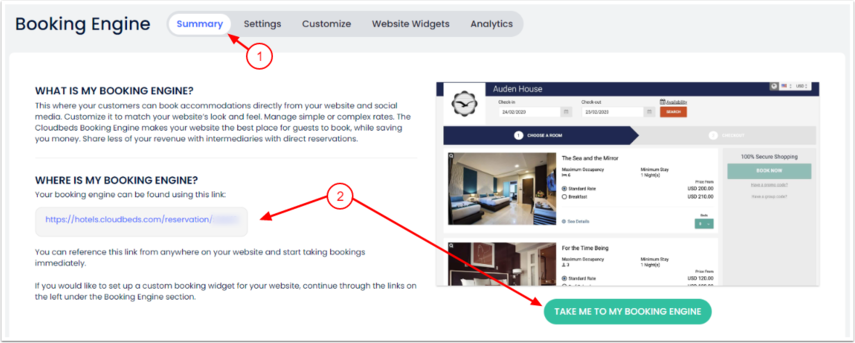 - Rezervasyon motoru URL'sine tıkla veya Beni Rezervasyon Motoruma götür seçeneğine tıkla