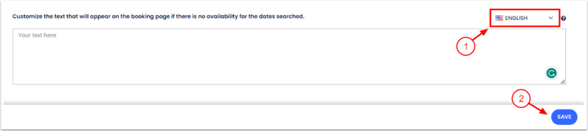 - Tarihler için müsaitlik olmadığında rezervasyon sayfasında görünecek metni özelleştir bölümüne kadar aşağı kaydır ve istediğin metni ekle