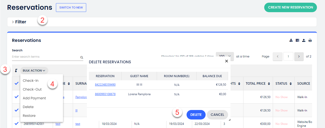 Toplu İşlem seçeneği ile Birden Fazla Rezervasyonu Güncelleme