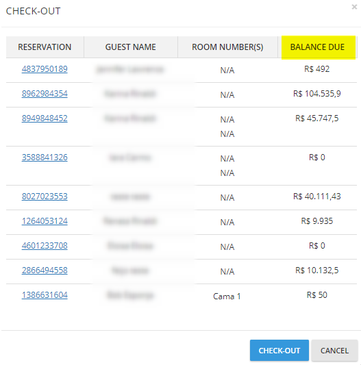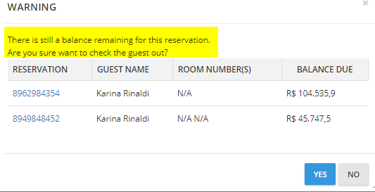 İzinlerin varsa ve bakiye durumu olan bir rezervasyonu çıkış yapmaya çalışırsan, sistem aşağıdaki uyarıyı gösterir: