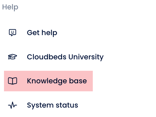 Yardım merkezine erişmenin en kolay yolu, Cloudbeds PMS içinde Bilgi Bankası seçeneğine tıklamaktır:
