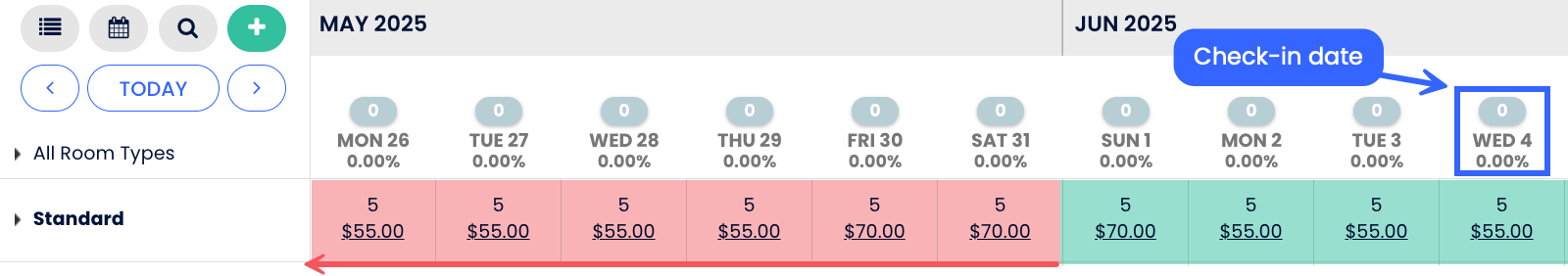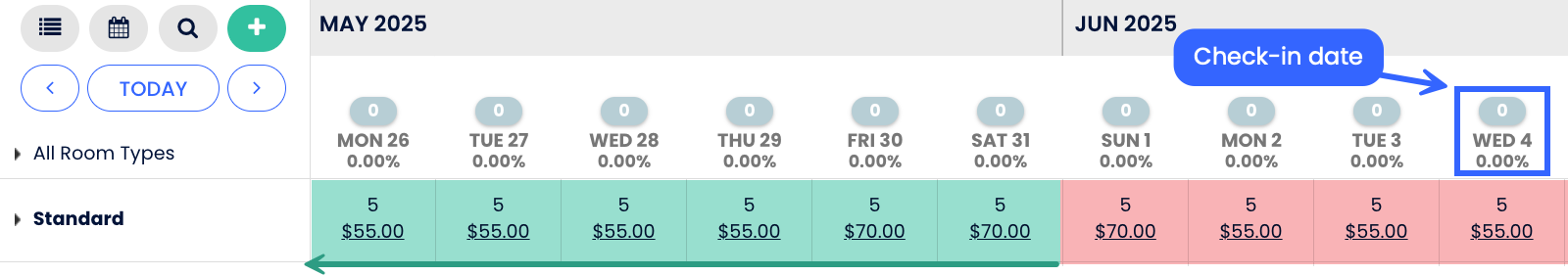 Örnek: Diyelim ki son dakika rezervasyon penceresini "3 gün" olarak ayarladın. Bir misafir 4 Haziran için rezervasyon yapmak isterse, ancak 1 Haziran veya sonrasında rezervasyon yapabilir.
